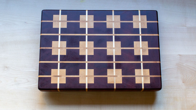 Planche à découper en sipo et érable (petites bandes) en bois "de bout"